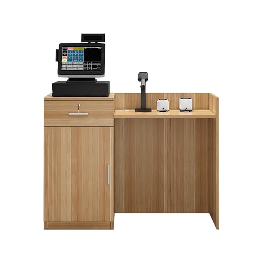 NEYTIIR Commercial Reception Desk, Dressing Table,Checkout Counter With Lockable Drawer, Wooden Computer Desk Reception Table, For Bar Beauty Salon Clothing Store(C,120CM)