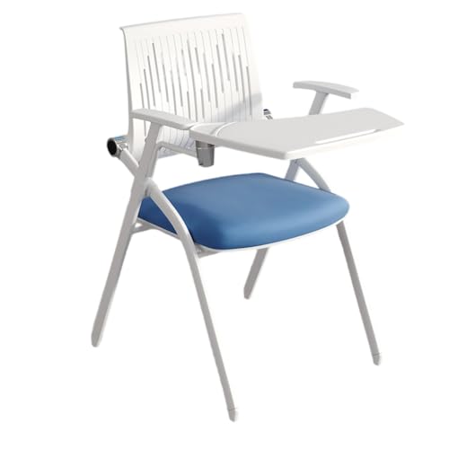 zktoermn Folding Office Chairs with Writing Pad, Comfortable Stackable Chairs Indoor, Easy to Use and Store, Computer Desk Chair for Home,Office, School(Blue)