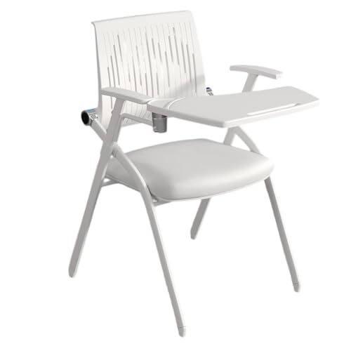 zktoermn Folding Office Chairs with Writing Pad, Comfortable Stackable Chairs Indoor, Easy to Use and Store, Computer Desk Chair for Home,Office, School(White)