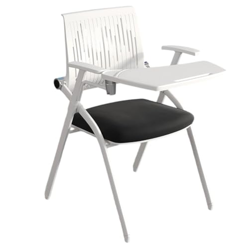 zktoermn Folding Office Chairs with Writing Pad, Comfortable Stackable Chairs Indoor, Easy to Use and Store, Computer Desk Chair for Home,Office, School(Black-A)