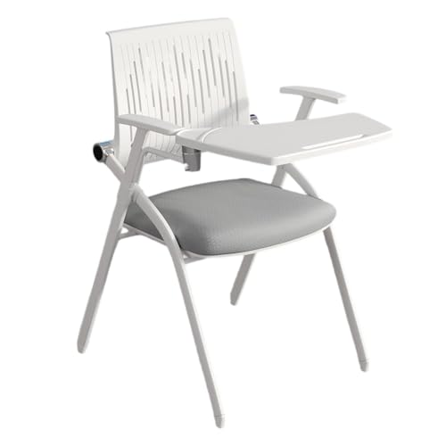 zktoermn Folding Office Chairs with Writing Pad, Comfortable Stackable Chairs Indoor, Easy to Use and Store, Computer Desk Chair for Home,Office, School(Gray)