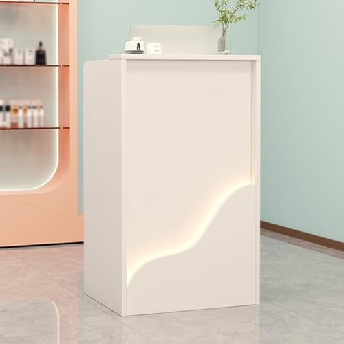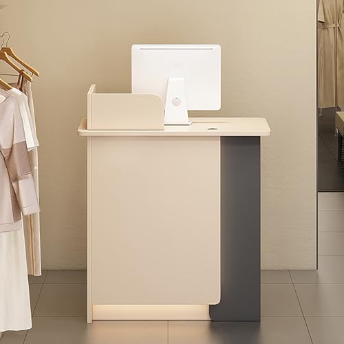 ZCFLWR Cashier bar Front Desk Company Counter Front Desk Wooden Computer Desk Reception Table with Lockable Drawers Reception Desk with Counter for Lobby Beauty Salon Office Clothing Store.(Cream w