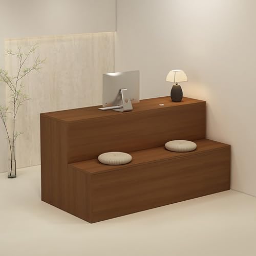 WWERTYY ZCFLWR Wooden Computer Desk Reception Table Retail Checkout Counter Font Desk Reception Counter with Lockable Drawer and Cabinet for Supermarket Convenience Store Hotel Beauty Salon.(Walnut)