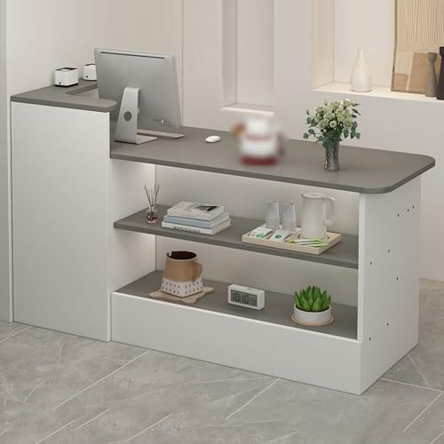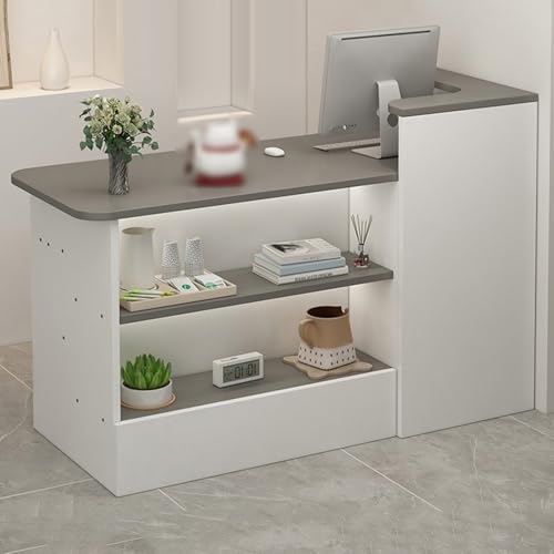 ZCFLWR Office Desk Reception Counter Table Reception Counter Wooden Computer Desk Reception Table with Lockable Drawer Show Salon Reception Desk for Supermarket Convenience Store Hotel.(Color:Grey,