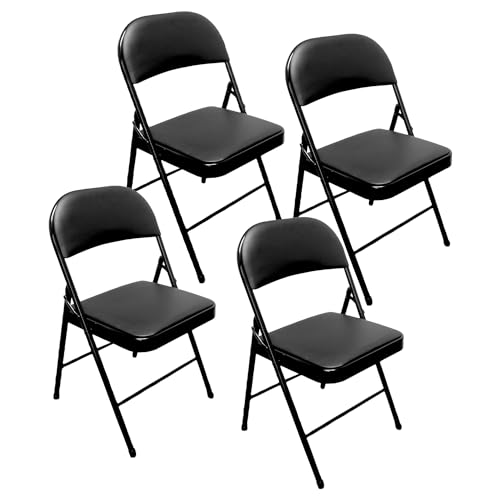 Taylor & Brown Pack of 4 Black Padded Folding Chair Back Rest Easy Store for Home, Dining, Office, Computer Desk Chairs, Seating Events - Size 44cm x 45cm x 78cm