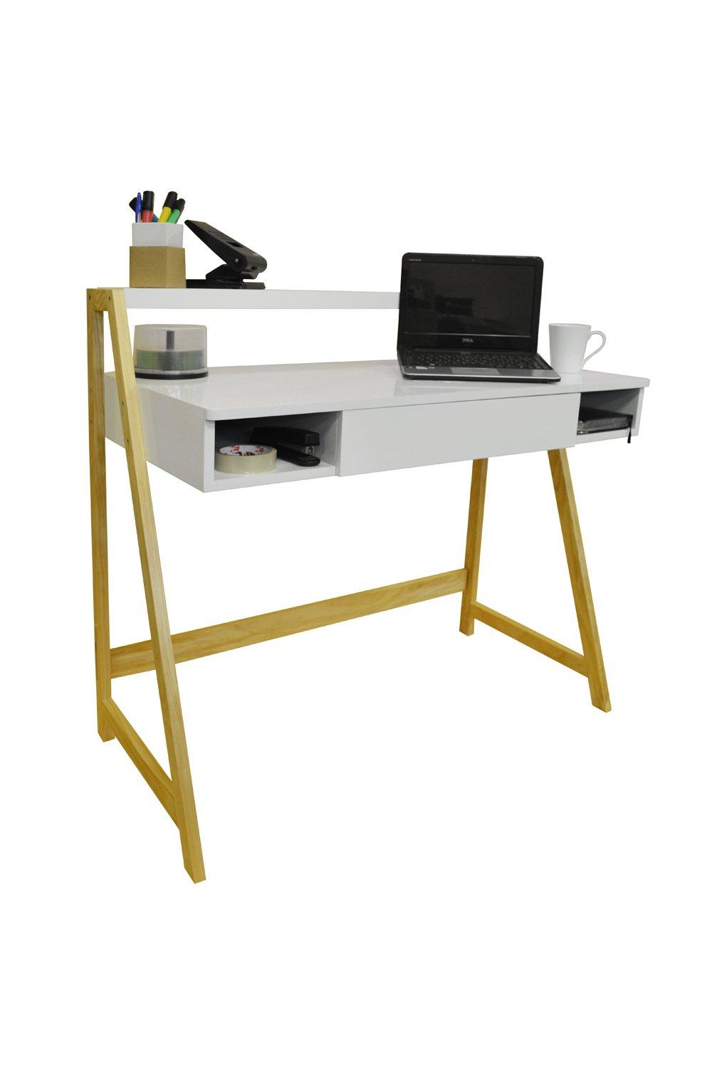 'Lean' - Retro Office Desk Computer Workstation Dressing Table - Pine White