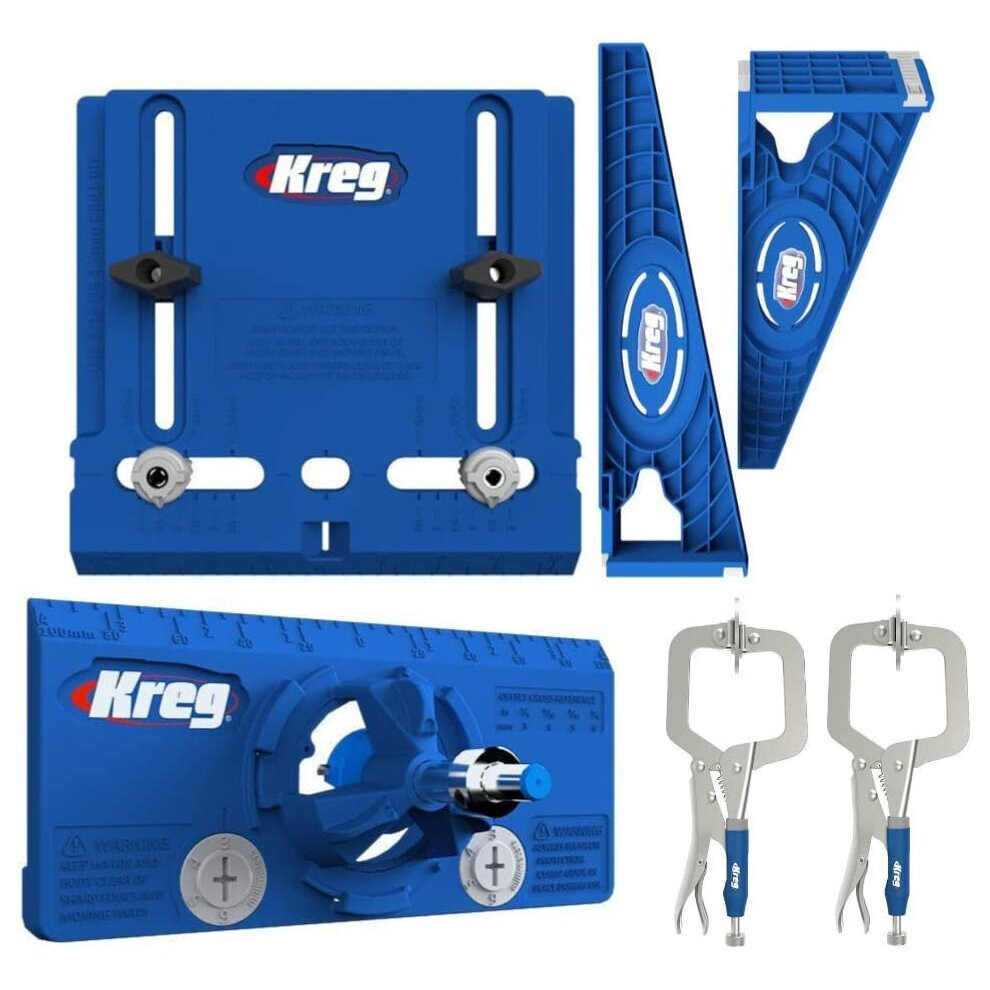 Kreg Tool Company - Drawer Slide Jig with Cabinet Hardware Jig with Concealed Hinge Jig and Two 2" Face Clamps