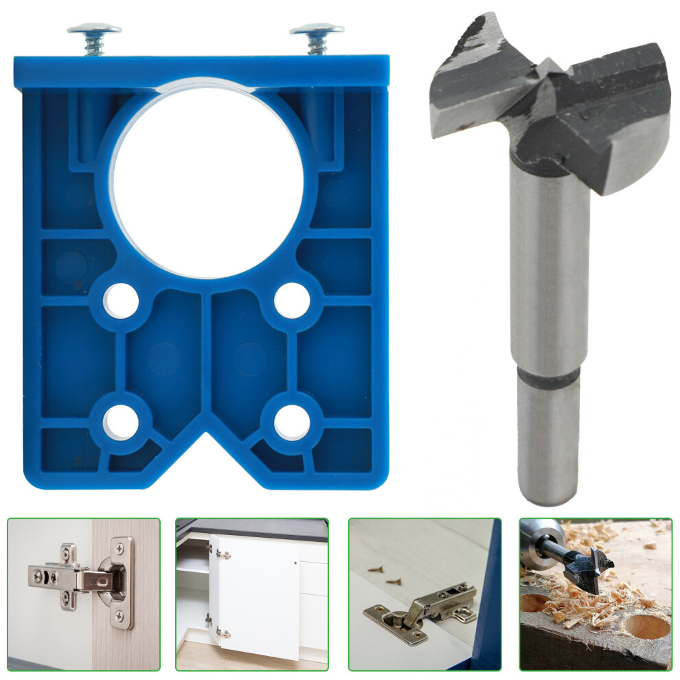 35mm For Kitchen Cabinet Doors Concealed Hinge Hole Jig+Saw Drill Bit Tool Set