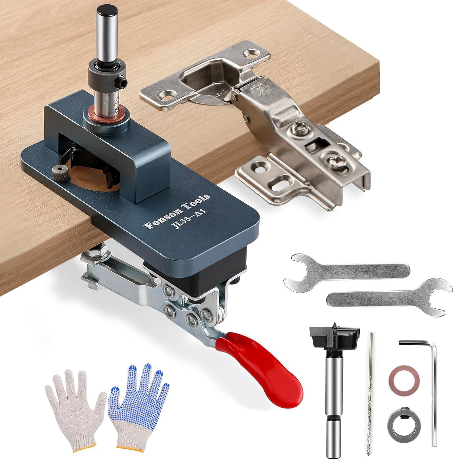 Cymax Hinge Jig Set,35mm Concealed Hinge Jig Drill Guide Set Forstner Bits Hinge Hole Cutter for Door Kitchen Cabinet Hinge