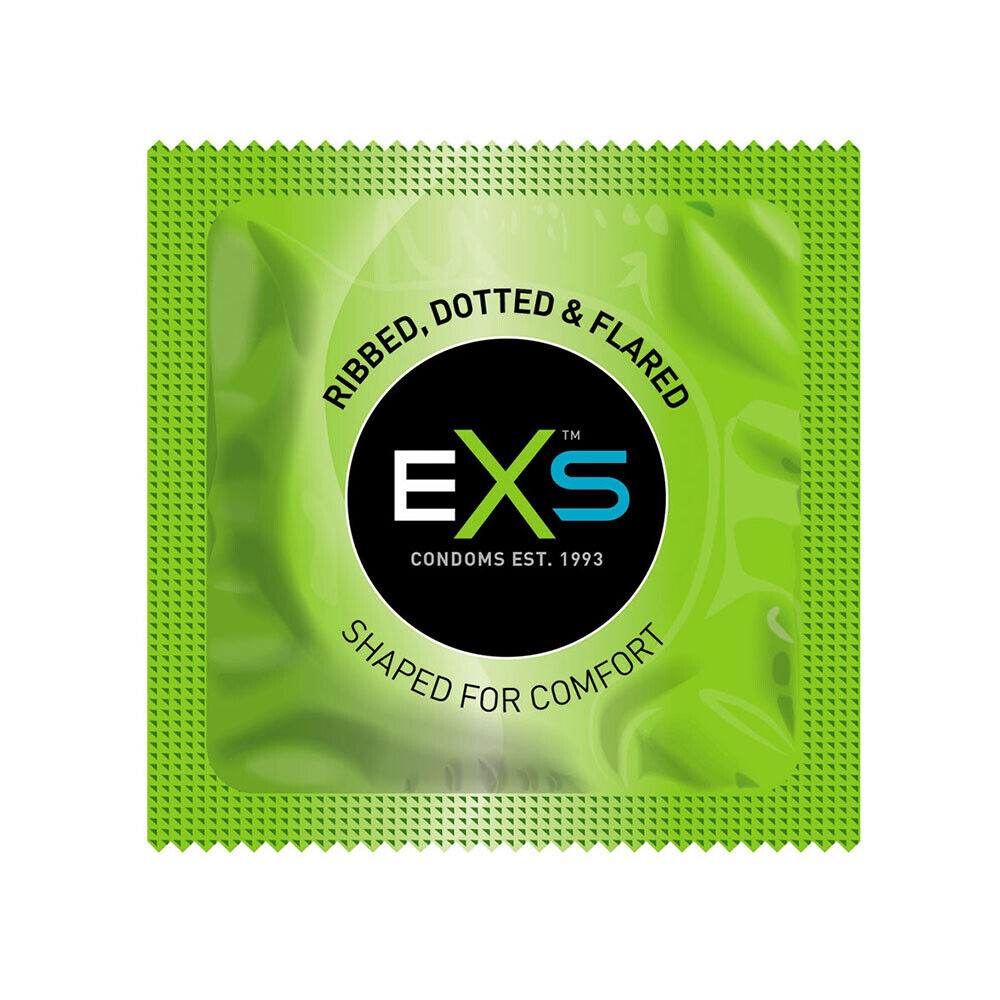 100 x Exs Ribbed Dotted Flared Condoms | Vegan | Orgasmic Stimulation Condoms
