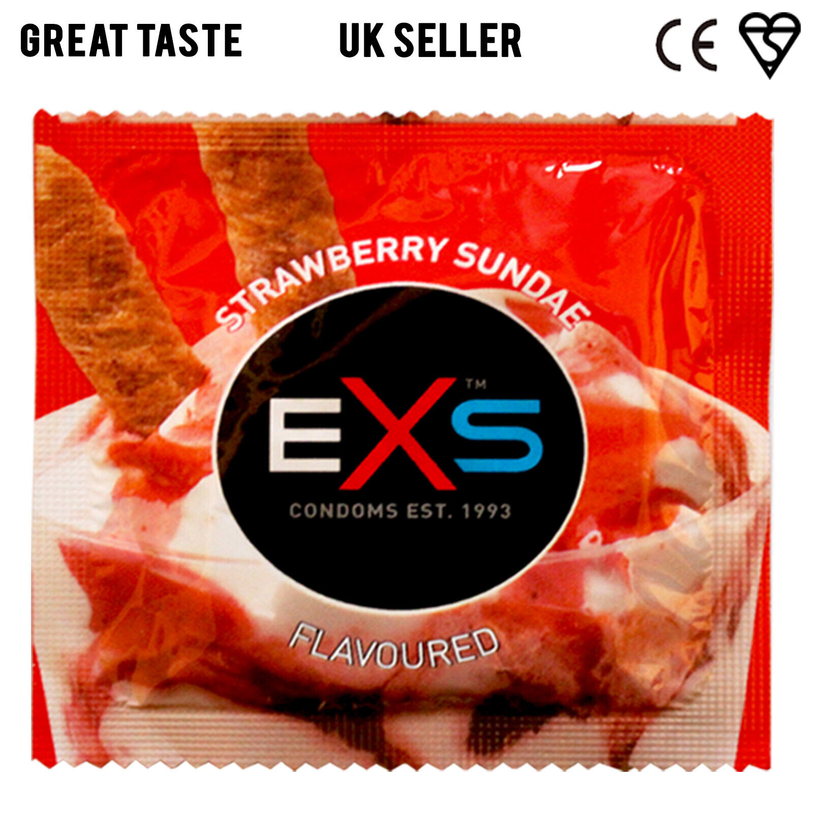 100 Pack EXS Strawberry Condom Condoms Flavoured Flavour Latex Fast Discreet