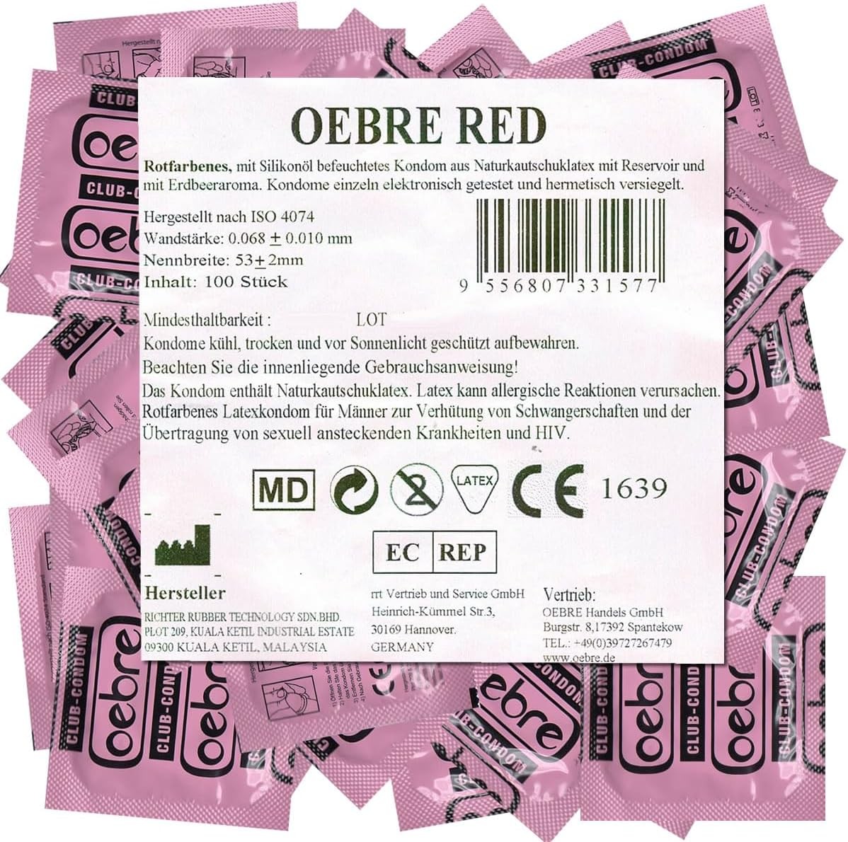 Red - 100 Strong Club Condoms, red Coloured and with Strawberry Flavour