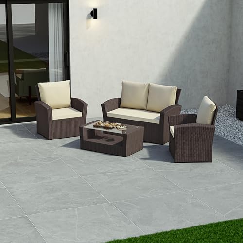Garden Vida Mylor 4 Seater Rattan Furniture Set, Outdoor, Patio Furniture, Conservatory Sofa Set, Brown (UKFR Certified) Garden Furniture