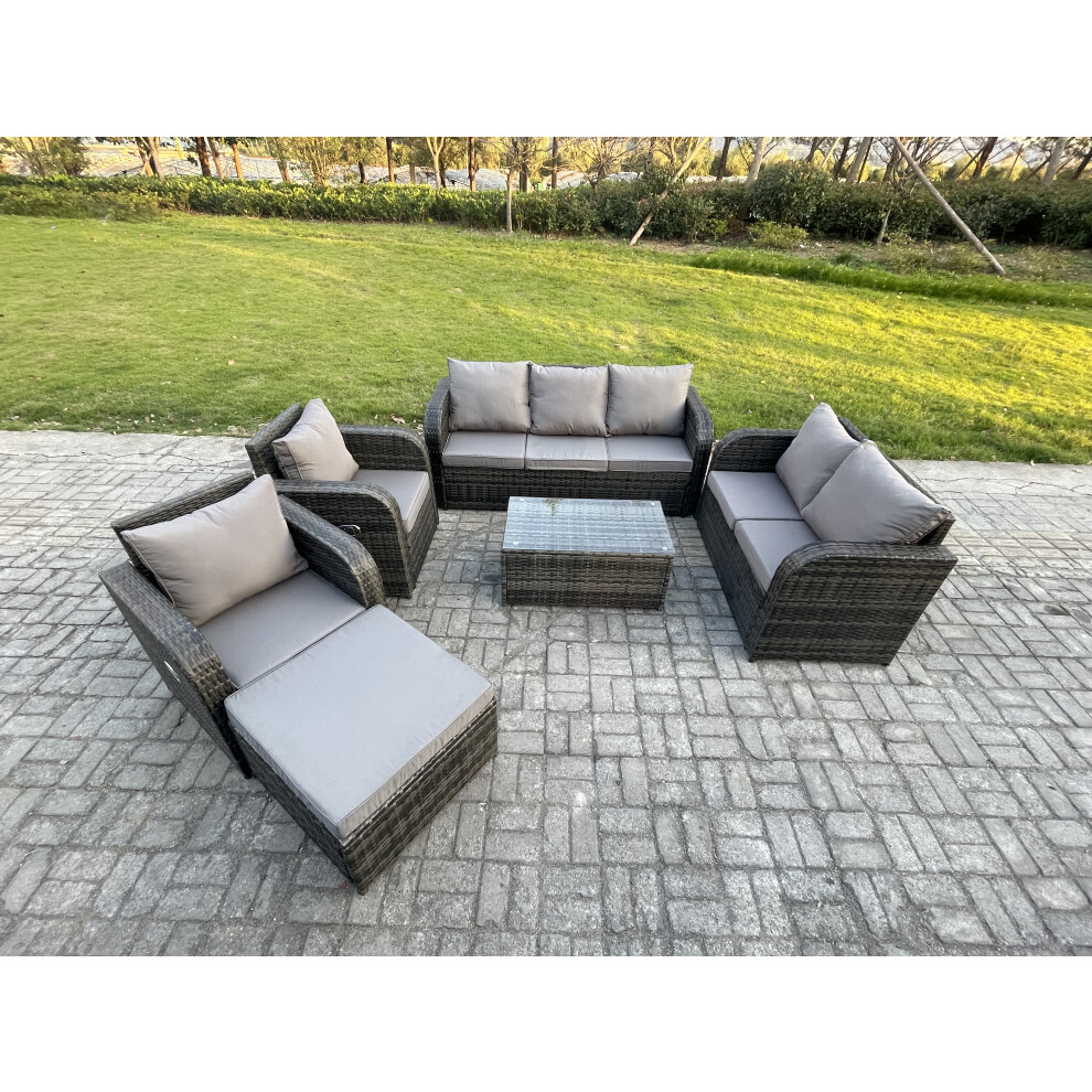 Fimous 7 Seater Rattan Wicker Garden Furniture Patio Conservatory Sofa Set with Coffee Table 3 Seater Sofa Love Sofa
