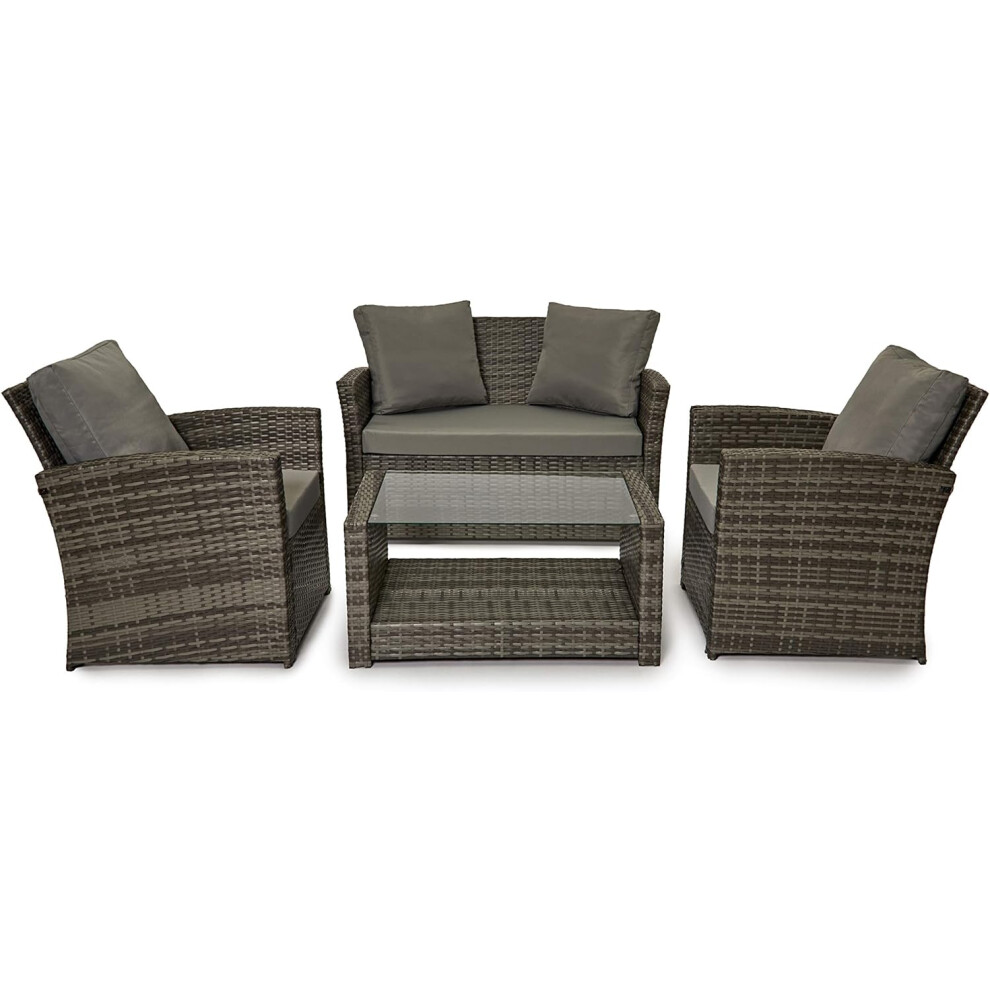 Garden Vida Mylor 4 Seater Rattan Furniture Set, Outdoor, Patio Furniture, Conservatory Sofa Set, Grey (UKFR Certified) Garden Furniture