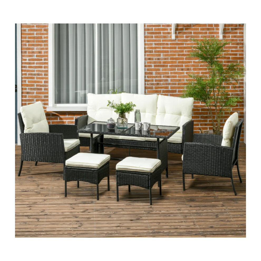 Outsunny 6 Pieces Rattan Furniture Set Conservatory Sofa Deluxe Wicker Garden Gr