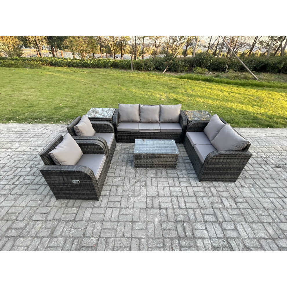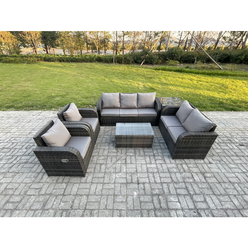 Fimous Rattan Wicker Garden Furniture Patio Conservatory Sofa Set with Rectangular Coffee Table Reclining Chair 2 Side Tables