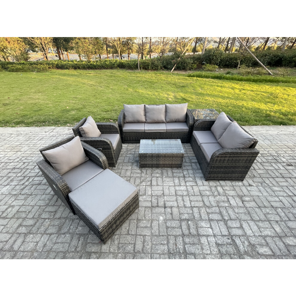 Fimous 7 Seater Rattan Wicker Garden Furniture Patio Conservatory Sofa Set with Coffee Table 3 Seater Sofa