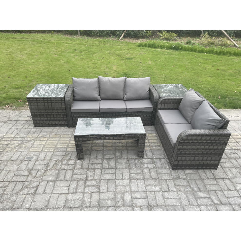 Fimous 6 Seater Rattan Wicker Garden Furniture Patio Conservatory Sofa Set with Rectangular Coffee Table 3 Seater Sofa Love Sofa