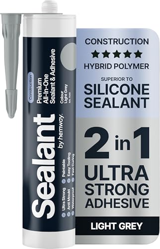 Light Grey Construction Sealant & Adhesive All-In-One Hybrid Polymer | Superior to Silicone Sealant | Waterproof, Odourless, Anti-Mould, Paintable | Kitchen Bathroom Outdoor - 300 ml 1 Pack