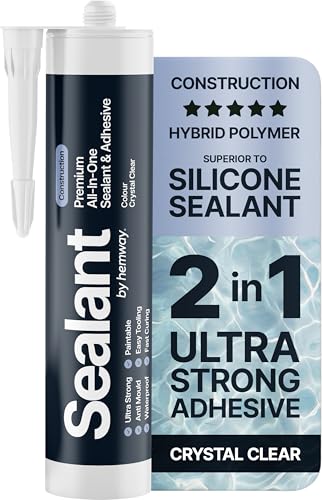 Crystal Clear Construction Sealant & Adhesive All-in-One Hybrid Polymer | Superior to Silicone Sealant | Waterproof, Odourless, Anti-Mould, Paintable | Kitchen Bathroom Outdoor - 300 ml 1 Pack