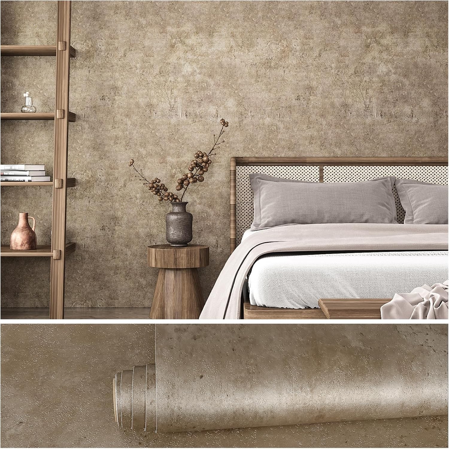 VEELIKE Vintage Brown Concrete Wallpaper Industrial Cement Contact Paper Self A