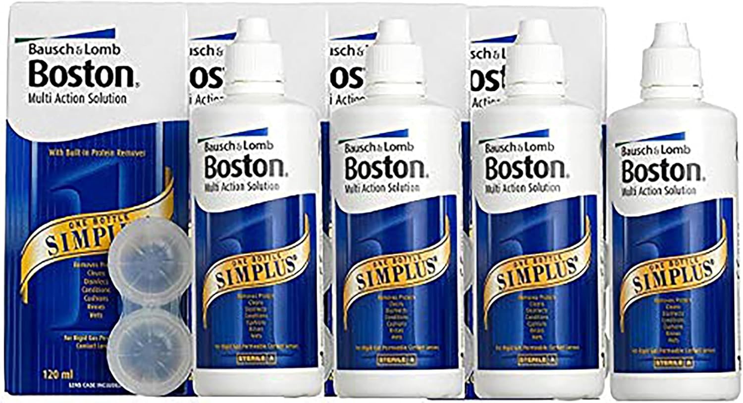 Boston Simplus Multi-Action Solution, 4X 120ml Contact Lens Solution for Rigid Gas Permeable Contact Lenses - Clean, Disinfect & Condition with 4X Lens Cases
