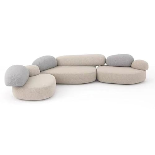 KIBONCY Creative Pebble-Shaped Modular Sectional Sofa, Curved Boucle Sofas,Solid Wood Frame,for Living Room, Bedroom(A)