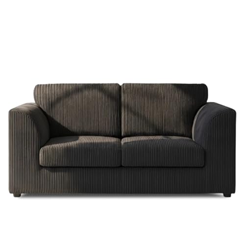 ark future Jumbo Cord Fabric High Back Living Room Sofas with Removable Cushions, Solid Wood Frame, Modern Contemporary Design (Black 2 Seater Sofa)