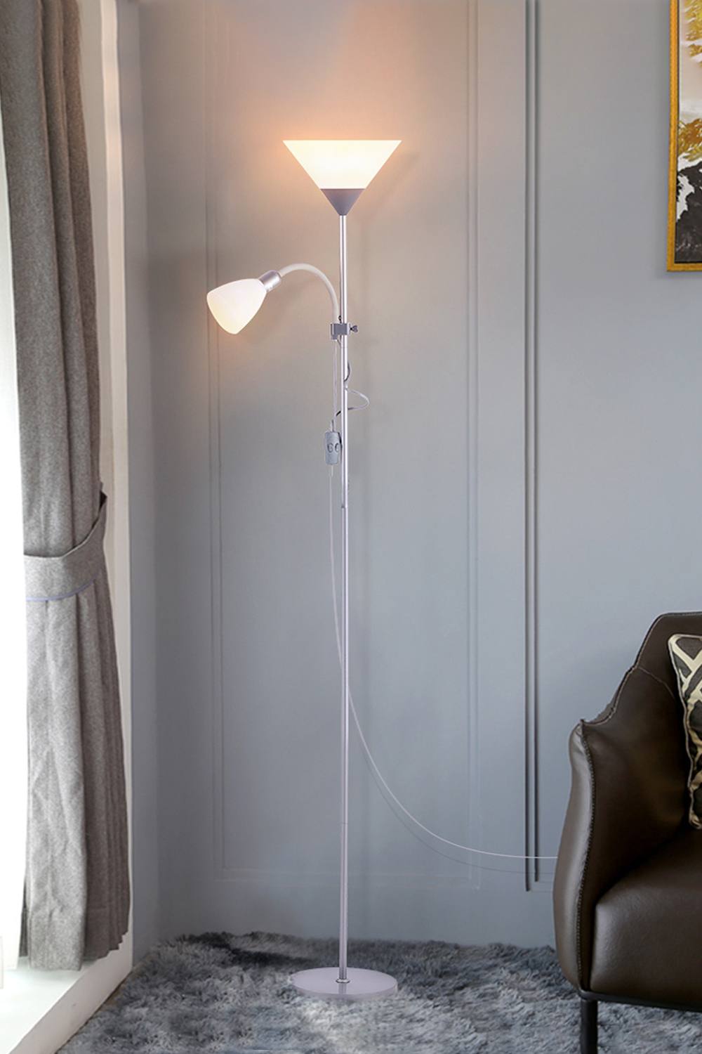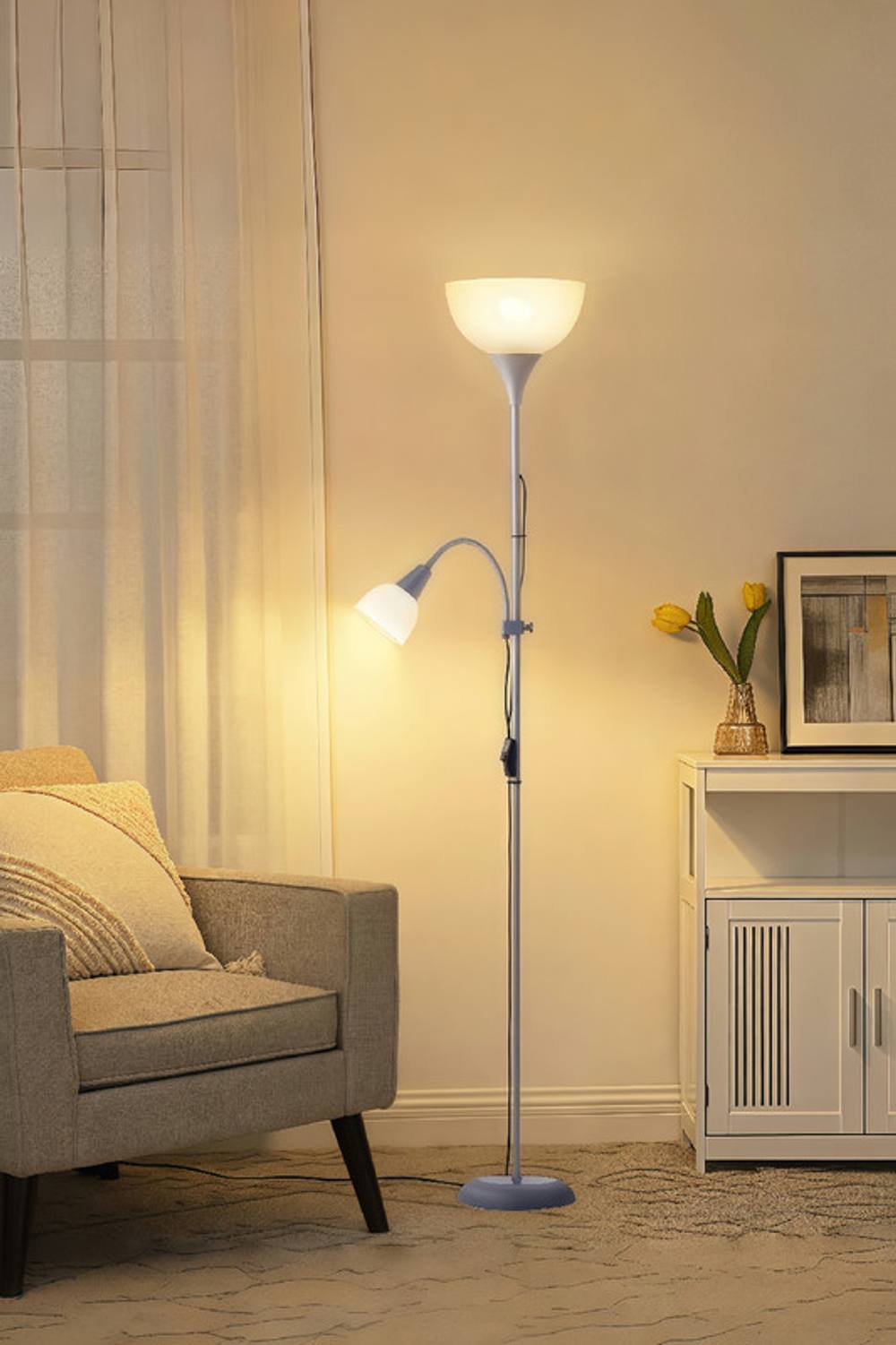 Living and Home Contemporary 2 Head Standing Floor Lamp for Living Room in Silver