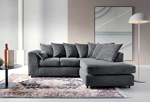 L shape Sofa - Comfy Soft XL Jumbo Cord 3 to 4 Seater Corner Sofa - Modular Left Hand or Right Hand Facing Couches - Comfortable Contemporary Design High Back Sofas Suite For Living Room (Grey, RH)