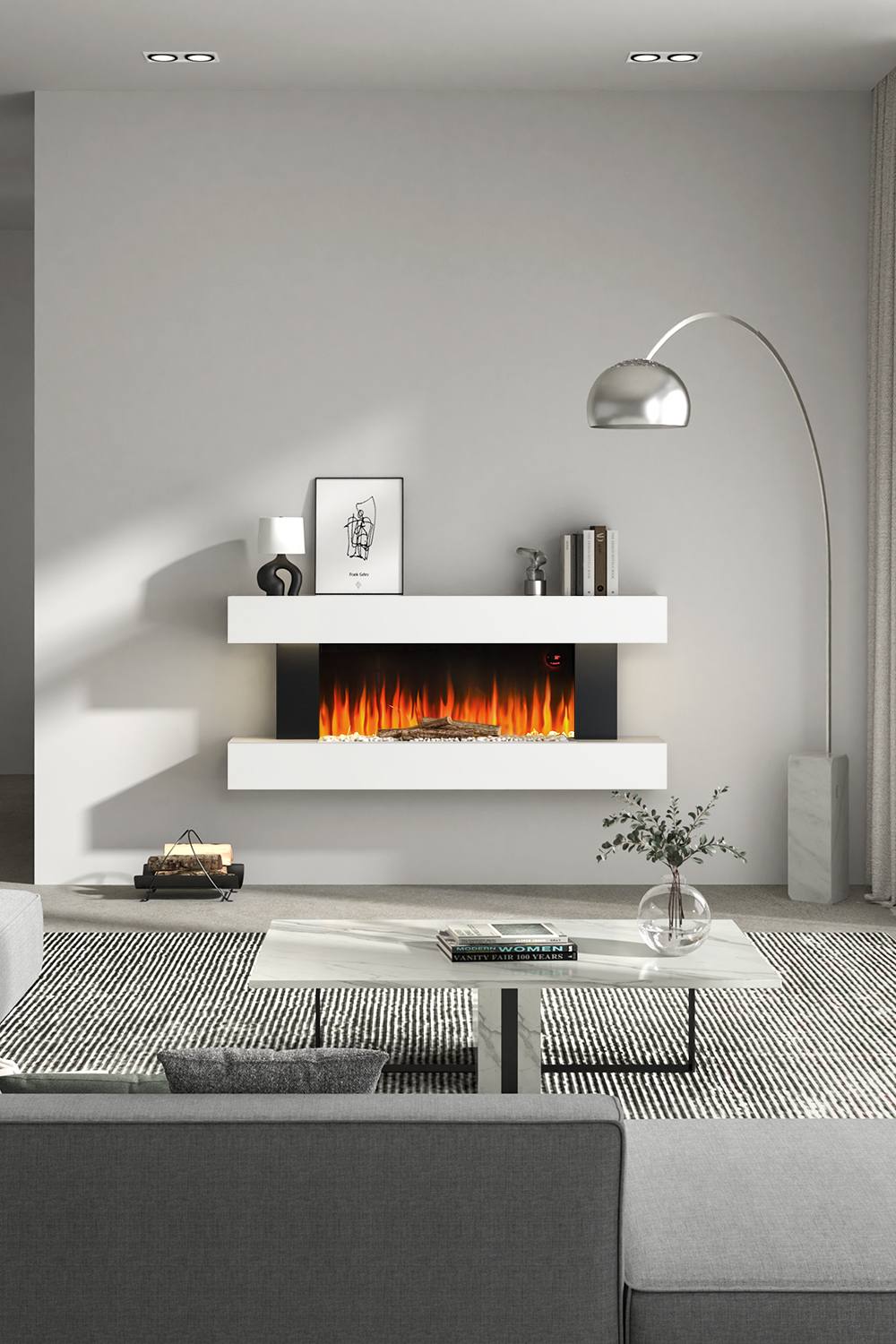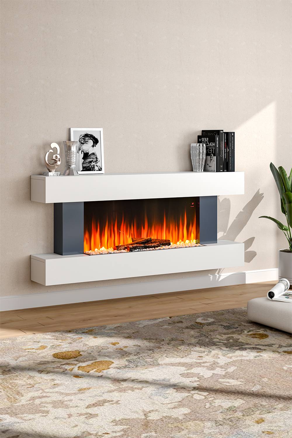 Living and Home WiFi Contemporary Wall Mounted/Freestanding Fireplace Mantel for Living Room in White