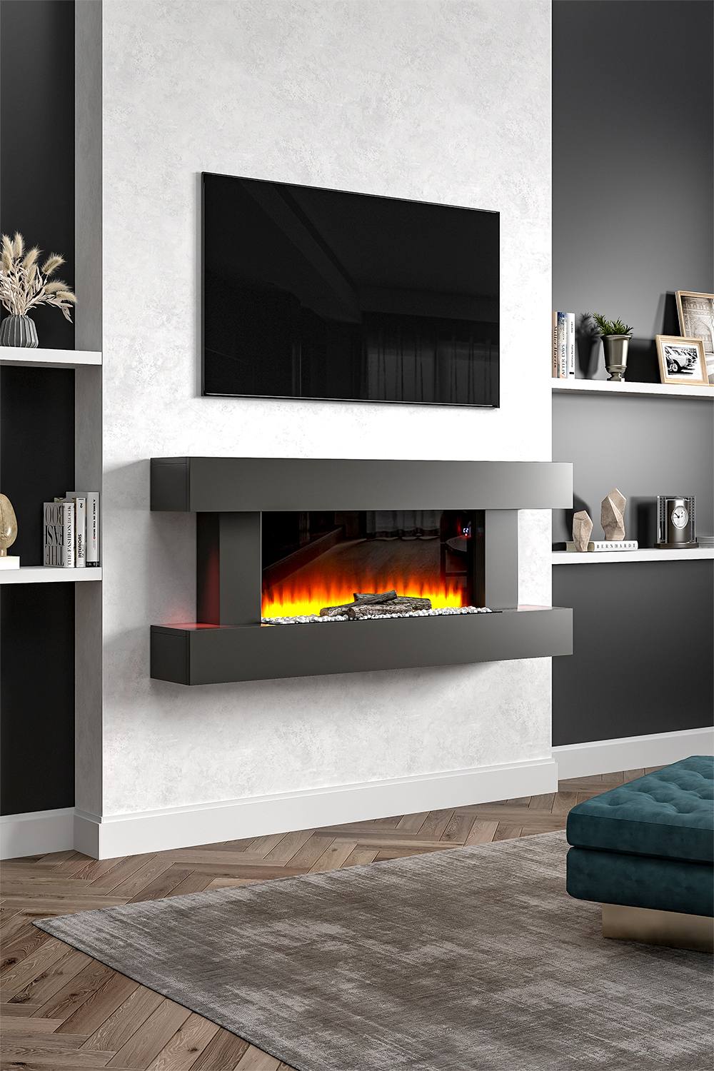 Living and Home Contemporary Wall Mounted/Freestanding Electric Fireplace for Living Room with Adjustable Flames and Automatic Safety Shutoff in Black