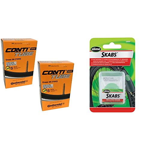 Continental Cross 28 700 x 32-47c Bike Inner Tubes - Presta 60mm Long Valve (Pair),Black & Slime 20053 Bike Skabs Patch Kit, for bike tube puncture repair, contains 6 patches and a metal scuffer