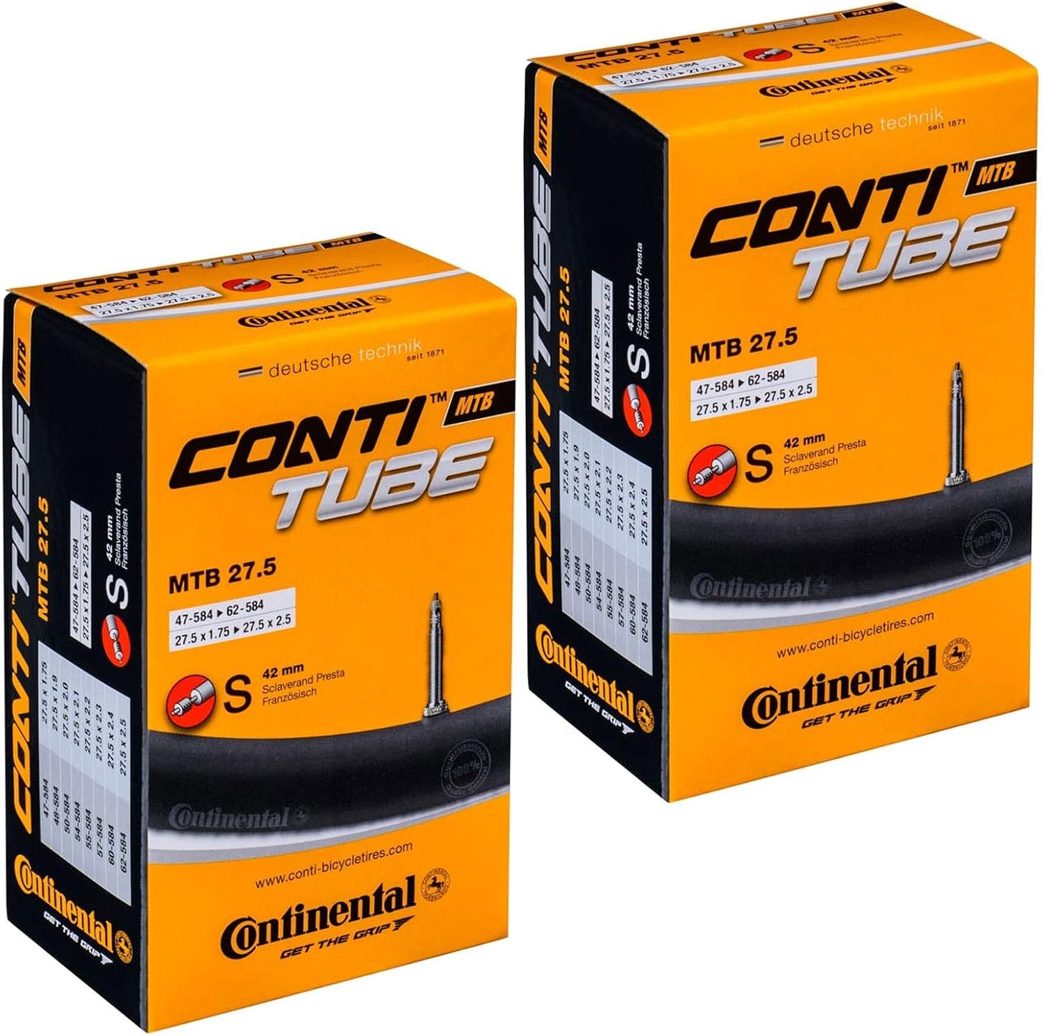 2 x Continental MTB 27.5 Mountain Bike inner tube Presta Valve 650B,Black,27.5"