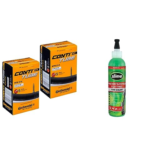 Continental MTB 27.5" x 1.75-2.5 Mountain Bike Inner Tubes with Presta Valve (Pair) & Slime 10015 Bike Tube Puncture Repair Sealant, Prevent and Repair, Suitable for all Bicycles