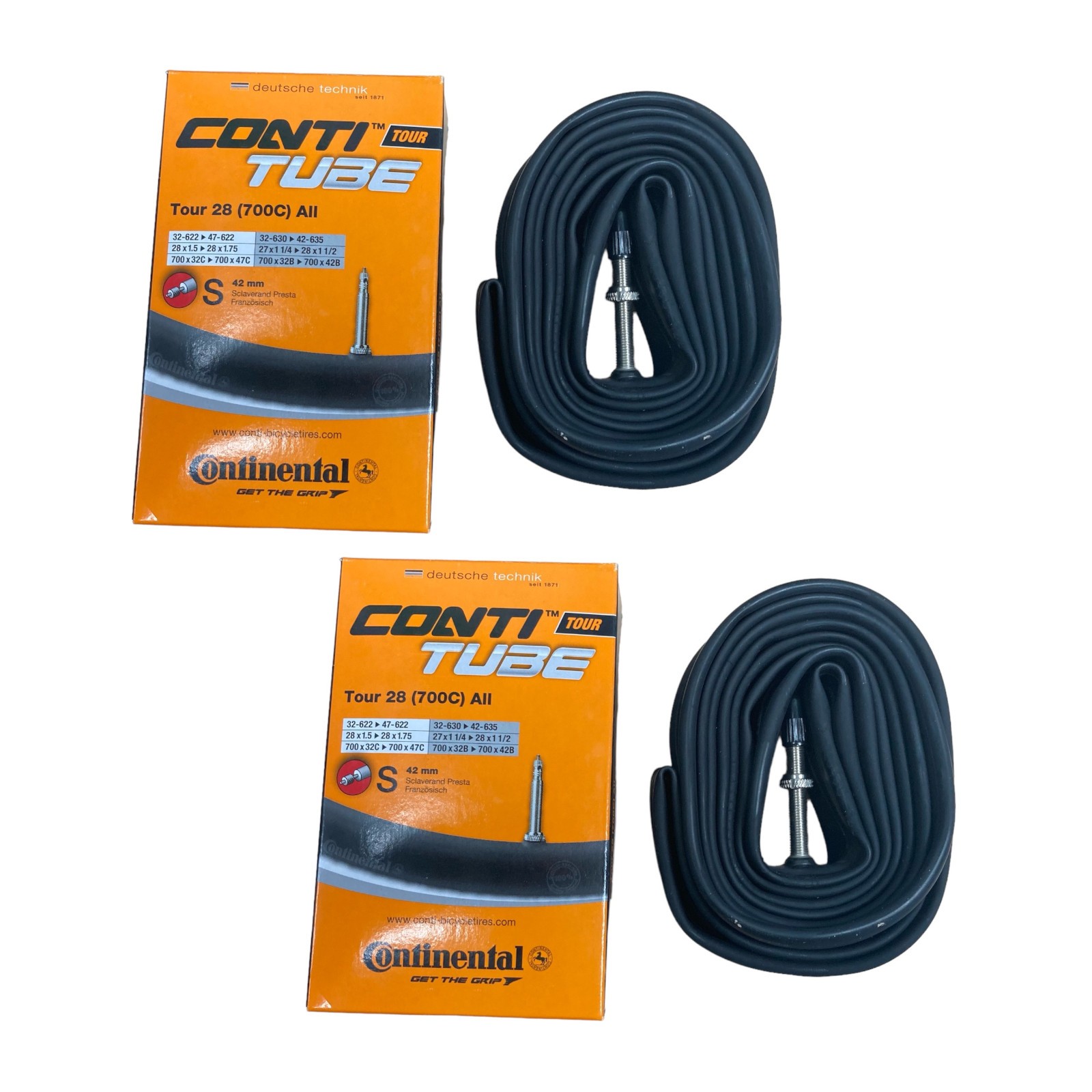 4 x Continental Bike Inner Tube Tour 28 700 32 47 Presta 42mm valve - Tour