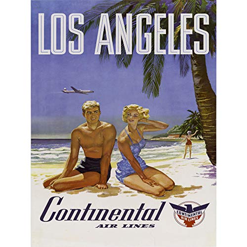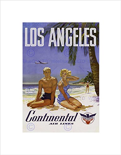 Wee Blue Coo TRAVEL LA LOS ANGELES CONTINENTAL AIRLINE BEACH TROPICALAD ART PRINT B12X1414