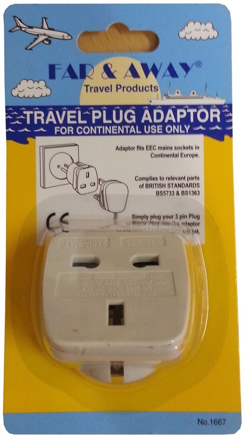 Far & Away Double Earthed Continental EU European Travel Adaptor Plug