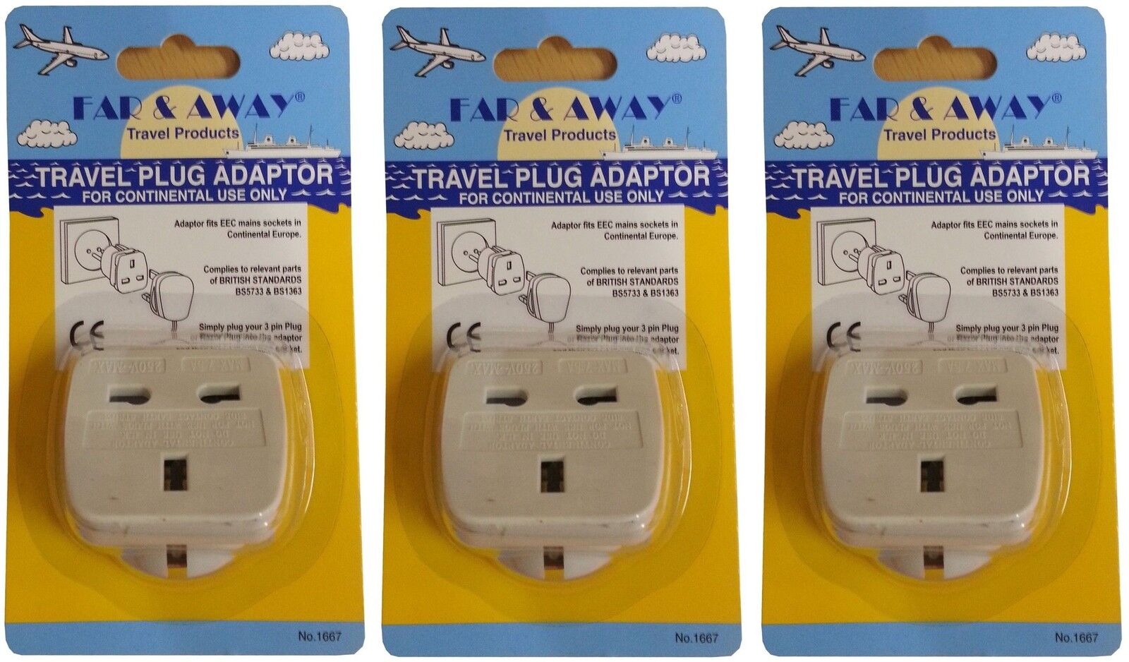 3x Far & Away Double Earthed Continental EU European Travel Adaptor Plug