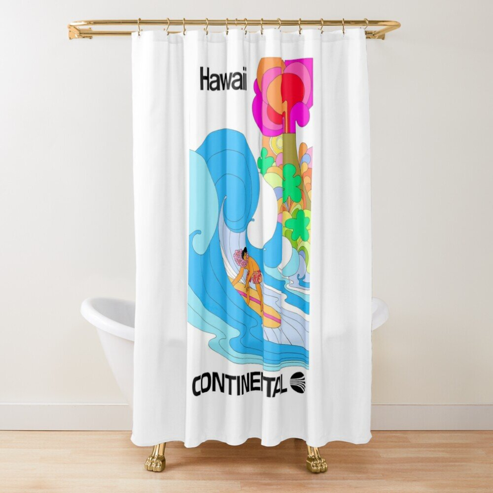 Shower Curtains 1969 HAWAII Continental Airlines Travel Poster for Bathroom Decor 72x72 inches