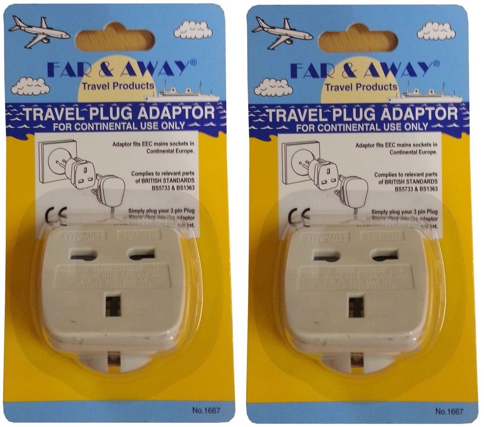 2x Far & Away Double Earthed Continental EU European Travel Adaptor Plug