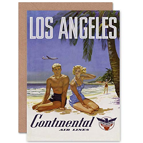 Wee Blue Coo TRAVEL LA LOS ANGELES CONTINENTAL AIRLINE BEACH TROPICAL GREETINGS CARD