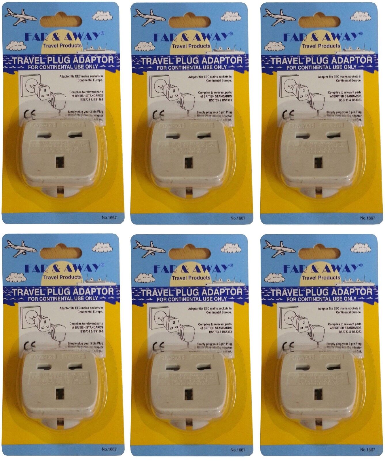 6x Far & Away Double Earthed Continental EU European Travel Adaptor Plug
