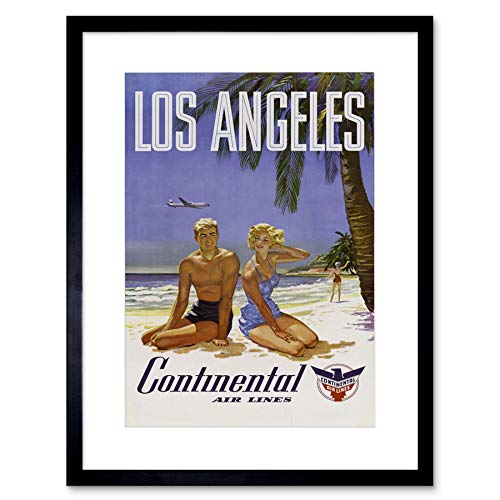 Wee Blue Coo Travel La Los Angeles Continental Airline Beach Tropicalad Art Framed Wall Art Print