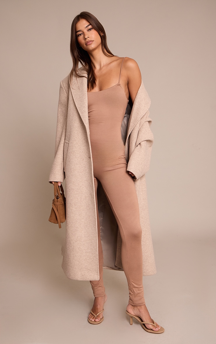 Mocha Spaghetti Strap Contour Jersey Jumpsuit
