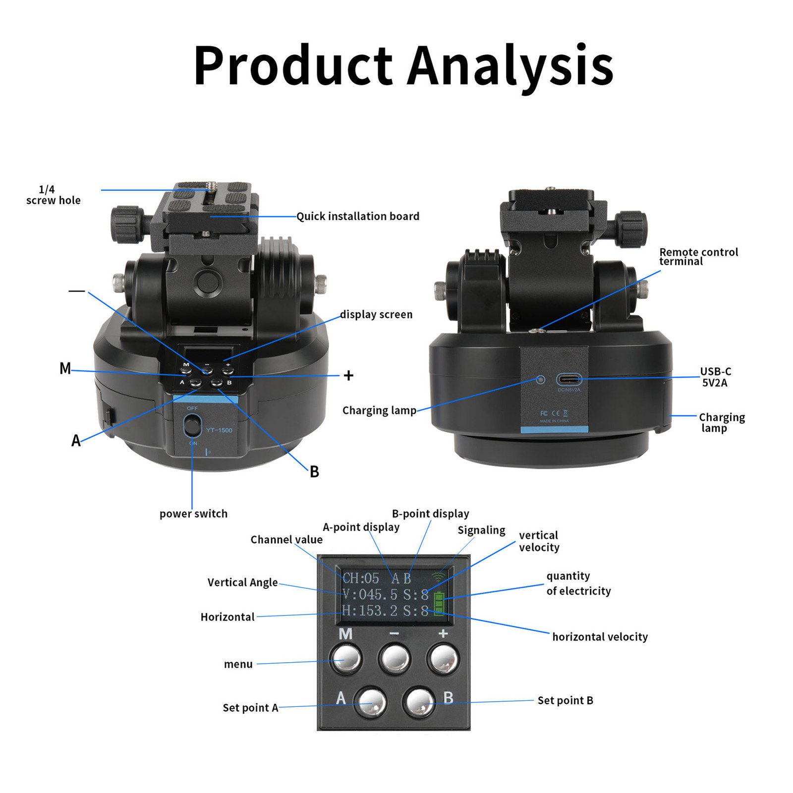 YT-1500pro Remote Control Pan Tilt Head 360° Motorized Rotating Panoramic Hea CT