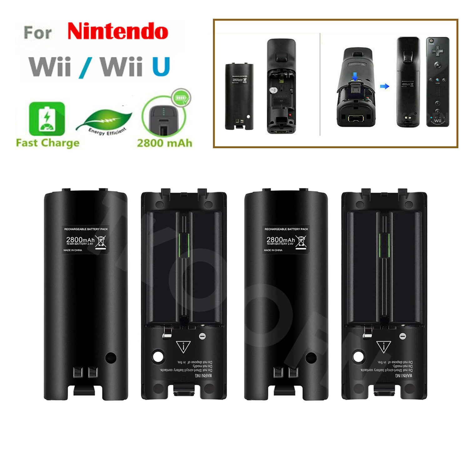 4 Pack Rechargeable Battery Pack For Nintendo Wii Remote Controller Battery UK
