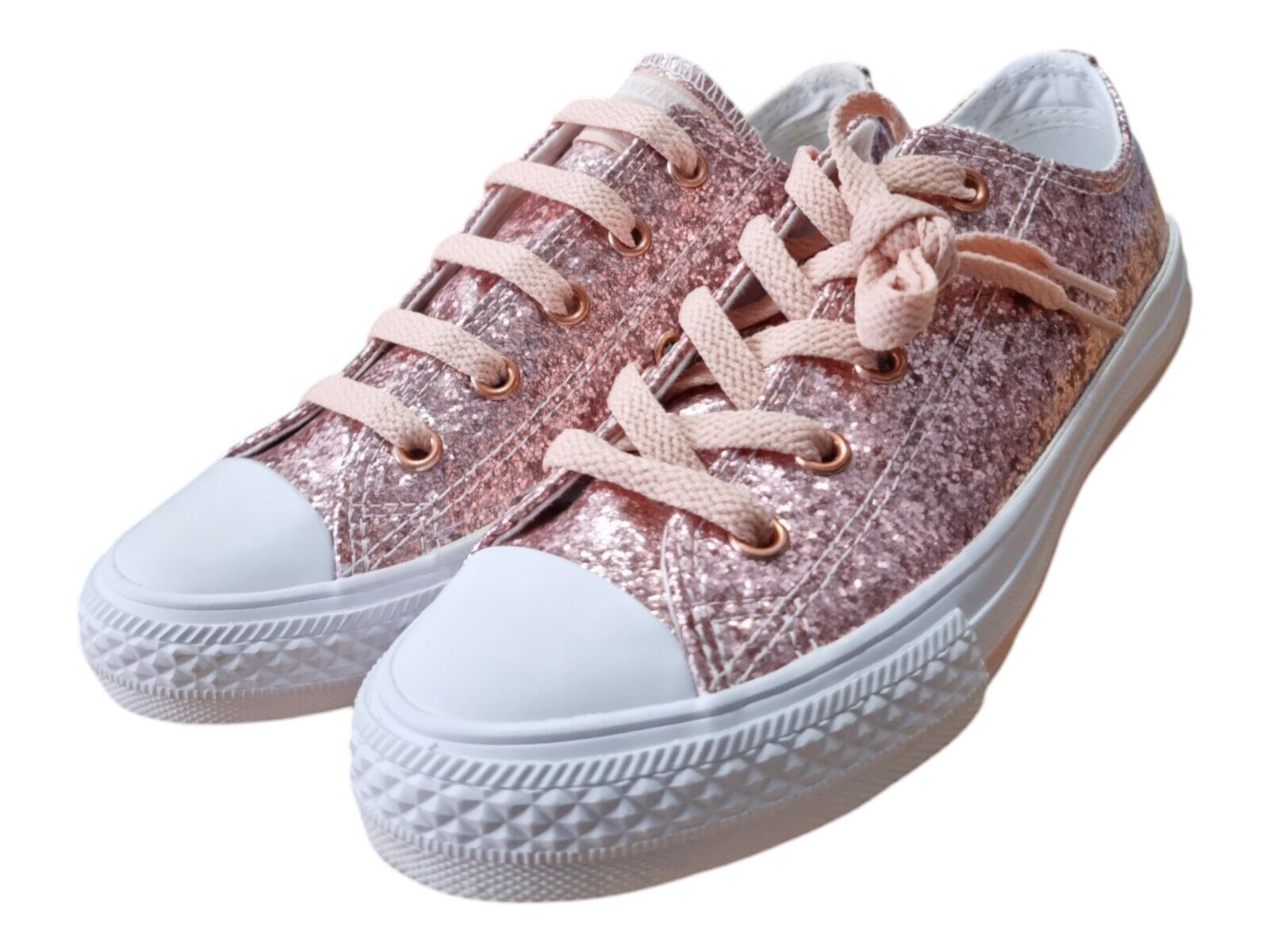 Converse Junior Girls CTAS Dusk Pink Glitter Trainers Size UK 2 / EU 34 / 21cm