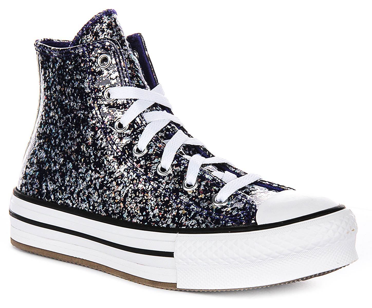 Converse A10043C All Star Glitter Junior Boys Trainer Navy Multi UK 3 - 7
